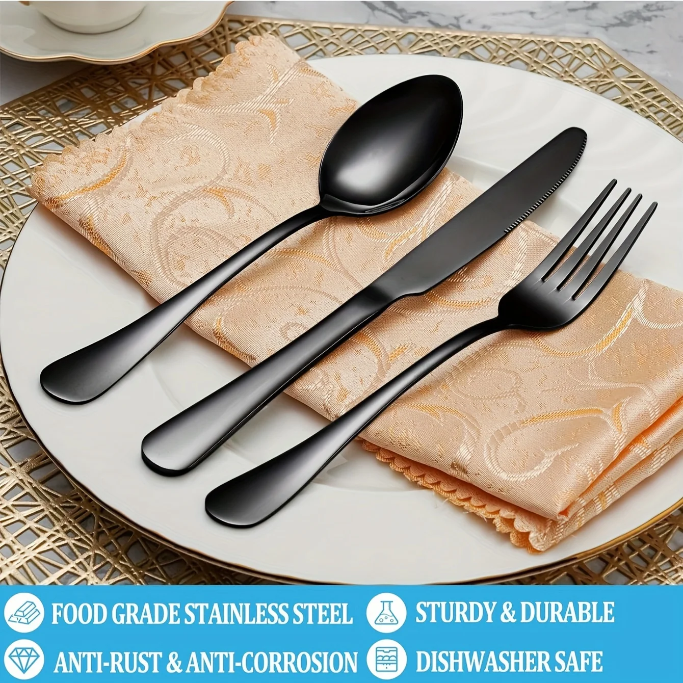 Bring sophistication and modern elegance to your meals with this black stainless steel silverware set—a durable and stylish upgrade for any dining occasion.