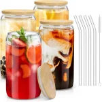 Enjoy your favorite beverages in style with this set of 4 premium glass cups, each holding 18.6oz/550ml—perfect for iced coffee, iced tea, smoothies, beer, cocktails, and more. Designed with eco-friendly bamboo lids and reusable glass straws, these glasses bring both modern style and sustainability to your kitchen.